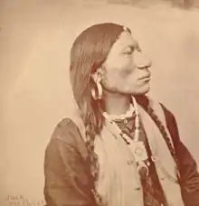 Nicaagat (leaves becoming green,[1] c. 1840–1882), also known as Chief, Captain and Ute Jack[2] and Green Leaf.[3][lower-alpha 1] A Ute warrior and subchief,[4] he led a Ute war party against the United States Army when it crossed Milk Creek onto the Ute reservation, which triggered the Battle of Milk Creek.[2] Prior to the conflict, he had traveled to meet up with Major Thomas Tipton Thornburgh to learn of his intentions and warn him that crossing the Milk Creek onto the White River Ute reservation would be seen as an invasion and an act of war. When the army entered the reservation, a shooter from Nicaagat's band shot and killed Thornburgh.