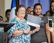 In all, Núñez has filed more than 20 cases with the IACHR and documented thousands of allegations of human rights violations; she reports that between 2007 and 2016 (under Daniel Ortega's second presidency), 35% of the allegations (5,584 cases) were against the National Police.[7] Threats against Núñez mounted and in 2008 and renewed annually since, the Inter-American Commission on Human Rights (IACHR) has issued precautionary measures to protect Núñez and her family, although the FSLN government has not complied with these.[10] In 2017, Murillo (by then Nicaragua's Vice-President as well as First Lady) wrote a letter, signed by nine FSLN officials,[10] to the US embassy in protest after Ambassador Lauren Dogu presented Núñez with an award on International Women's Day.[6]
