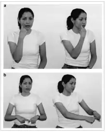 - ↑ Senghas, Ann, and Coppola, Marie. Children Creating Language: How Nicaraguan Sign Language Acquired a Spatial Grammar. Sage Publications. SAGE, July 1, 2001. p. 327.