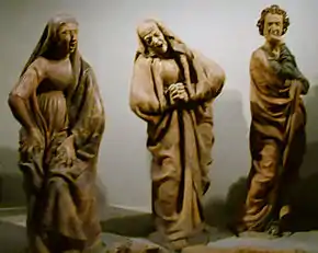 Niccolò dell’Arca worked on this masterpiece between 1469 and 1473, leaving it unfinished. He probably continued intermittently at it until his death. Art critics see in this masterpiece a blend of influences: Burgundian, Florentine and non-Tuscan (such as details in clothing). The way these statuettes express their emotions and the patterns in their dresses and hair evoke the style of Jacopo della Quercia.