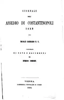 Nicolò Barbaro, son of Marco, was a Venetian nobleman and author of an eyewitness account, written in Venetian vernacular, of the Ottoman siege and conquest of Byzantine Constantinople in 1453 (also referred to as the Fall of Constantinople).[1][2]