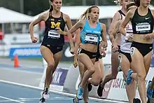 Working with Frank Gagliano at NJNY Track Club, she began to run over longer distances in 2015, starting with a fourth-place finish over two miles at the 2015 USA Indoor Track and Field Championships. Nicole ran 4:11.65 in the 1500 m beating Marielle Hall in Princeton.[8] She ran her first 5000 meters at the Payton Jordan Invitational in May and surprised by taking third in a time of 15:05.58 minutes – this met the qualifying standard for the national team and was over 25 seconds faster than she anticipated before the race. In her second outing over the distance she won the national title at the 2015 USA Outdoor Track and Field Championships, beating much favoured opposition.[3][9][10] Tully ran 2016 Olympic standard in 1500 metres (4:05.89) in Heusden, Belgium 18 July 2015. Tully finished the 2015 year ranked 25th in the world[11] in 5000 metres after finishing 14th in the 5000 m 2015 IAAF World Championships.