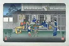 Hiroshige's print of Niekawa-juku, part of the series The Sixty-nine Stations of the Kiso Kaidō