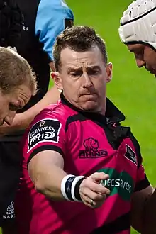 Nigel Owens, MBE (born 18 June 1971) is a Welsh former international rugby union referee, who retired in December 2020 after a 17-year career. He previously held the world record for the most test matches refereed[1] and is one of five international referees listed as professional within the Welsh Rugby Union, alongside Craig Evans, Adam Jones, Dan Jones and Ben Whitehouse.[2] He is widely considered to be one of the greatest rugby referees of all time.