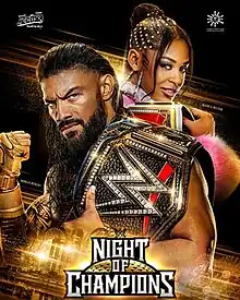The original theme of Night of Champions from 2007 to 2015 was that every main roster championship was to be contested. This theme was not retained for the 2023 event, as the Undisputed WWE Universal Championship, the WWE United States Championship, and the WWE Women's Tag Team Championship were not contested. However, five of the event's seven matches were championship matches.[10] The event also marked the 1,000th day for Roman Reigns as Universal Champion. He won the title at Payback on August 30, 2020,[11] and later won the WWE Championship at WrestleMania 38 in April 2022 to become the Undisputed WWE Universal Champion.[12]