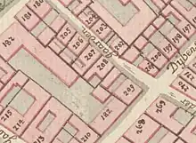 The building was again hit by fire in 1855 but subsequently rebuilt.[24] The property was initially listed as Dybensgade 20/Skvaldergade 6 when house numbering by street was introduced in 1859 as a supplement to the old cadastrel numbers by quarter. In 1896, when Skvaldergade was renamed Nikolajgade, it was changed to 1896 Dybensgade 20/Nikolajgade 20.