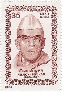 Nilmoni Phukan (Assamese: নীলমণি ফুকন; 1880–1978) was an Assamese writer, poet, freedom fighter and politician popularly known as Bagmibor (Assamese: বাগ্মীবৰ) in the Assamese literature.[1] Since he shares his name with another Assamese poet, Nilmani Phukan, he is often referred as Nilmoni Phukan (Senior). Phukan was the president of the Asam Sahitya Sabha for two times; in 1944 held at Sivasagar district and in 1947 held at Dibrugarh district of Assam.[2]