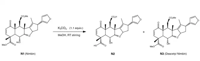 Chemical reaction - Nimbolide to 6-homodesacetylnimbin