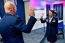 Chief of Space Operations Raymond swearing in Armagno as a U.S. Space Force lieutenant general, August 17, 2020.