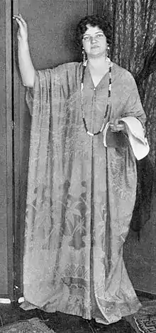 Putnam was a prolific writer, penning romances, westerns, musical comedies and Gothic horror. She wrote pieces for The Saturday Evening Post[7] and had a syndicated column called "I and George" that was carried in 400 newspapers.[8] She also wrote children's books and created a comic book series for children called Sunny Bunny. In 1928 or 1929 she began the comic strip Witty Kitty.[9] Putnam was also a vocal advocate for Victorian dress reform, decrying the horrors of corsets and experimenting with her own dress designs.
