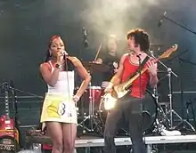 Ninja became lead singer for The Go! Team after founder Ian Parton created the first The Go! Team studio album. With Ninja, the live band became a "separate entity" to the original studio vision, as their performances became radically different from their recordings, particularly due to Ninja's freestyled vocals contrary to the sampled vocals present on the album.[9] Parton acknowledged that Ninja had become the "face of the band" in an interview with Erik Leijon in September 2007.[10]