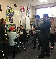 Congressman Salud Carbajal visiting with students at Nipomo High School in 2020.