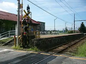 The station has one ground-level side platform serving a single bi-directional track. The station is unattended.