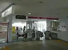Previously there was only one ticket gate, at the south exit, and the platform and station building were connected by an underground passageway. In order to make it accessible, and to prevent traffic accidents at the railroad crossing outside the station, it was decided that it would be rebuilt as an over-track station with a north exit, elevators and escalators. It was also decided to add a free passageway over the tracks as well as elevators and an escalator on the north end, and construction began in October 2007, with the new station building opening on 16 December of the same year. On 25 March 2008, the new south exit, with elevators, escalators and stairs opened. Because of space constraints, on the north side there is only an upward escalator.