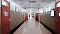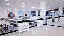 In the late 1970s, the library was reestablished and underwent massive development during the 1980s. The present school library was built in 1989. The library currently occupies 802.12 m2 in area, with 195 seats in the reading room, available for 2 classes at the same time.[8] It provides Senior 3 students with a room for individual study (自习室). Three librarians are in charge of the library.
