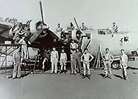![]() A No. 102 Squadron B-24 Liberator undergoing a routine inspection in 1945 | |