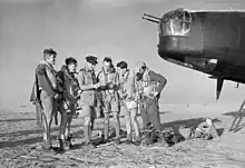 No. 150 Squadron Wellington crew are briefed at Kairouan, Tunisia, for a raid on targets in the Salerno area.