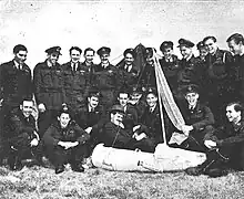 Godfrey Huggins, the Prime Minister of Southern Rhodesia, visits No. 266 (Rhodesia) Squadron RAF in May 1944. The PM sits in a dinghy, surrounded by men of the unit.