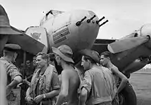 The squadron moved with the Beaufighters to India in March 1944, re-equipping with de Havilland Mosquitos in October that year. This was not a success as the Mosquito was almost immediately grounded owing to failures of the wooden structure due to the hot and humid Indian climate, and it re-acquired the Beaufighter in November.[6] They were soon supporting operations in Burma in both day and night attacks with rockets. The squadron partly re-equipped with Mosquitos in February 1945, with both its Beaufighters and Mosquitos being heavily used to support General Slim's 14th Army in its attack against Mandalay. It completely re-equipped with Mosquitos in April 1945, continuing operations against Japanese forces until the end of the war. After the war it moved to Java to operate against Indonesian nationalist forces but it was disbanded at Butterworth on 21 March 1946.[23]