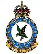 No. 486 Squadron was formed on 3 March 1942 at RAF Kirton in Lindsey, Lincolnshire, and was the second New Zealand squadron in Fighter Command.[4][Note 1] The squadron's motto, in Māori, the indigenous language of New Zealand, was Hiwa hau Maka, or Beware of the Wild Winds in English. A kea volant was selected as its badge.[6]