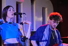 Caroline Polachek (left) and Patrick Wimberly (right) of the band Chairlift worked with Beyoncé on her fifth studio album. "No Angel" written by Polachek was included on Beyoncé.