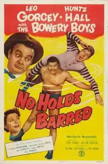 No Holds Barred is a 1952 American comedy film directed by William Beaudine and starring The Bowery Boys, Marjorie Reynolds and Leonard Penn.[1] The film was released on November 23, 1952, by Monogram Pictures and is the twenty-eighth film in the series.