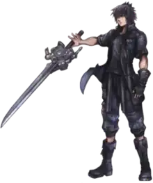 ![]() Noctis wielding the Engine Blade, as drawn by Tetsuya Nomura for Dissidia Final Fantasy NT. | |