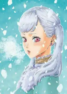 Noelle Silva (Japanese: ノエル・シルヴァ, Hepburn: Noeru Shiruva) is a fictional character of the manga series Black Clover created by Yūki Tabata. A Magic Knight in the Black Bulls, she is a royal of the Clover Kingdom and daughter of the House of Silva who joins the squad alongside Asta. Unable to control her magic despite her lineage, her goal is to make her family acknowledge her.