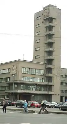 Trotsky's best-known project is the House of Soviets in Saint Petersburg. At the year of its completion, the building was the largest office building in Saint Petersburg (then Leningrad). In March 1936, the Leningrad Soviet decided to relocate all the city's administration to a new site at the southern end of International Avenue. In open tender, Trotsky's project was selected over ten others. It was completed after Trotsky death, with co-authors Modest Shepilevsky and Yakov Lukin, and it features an impressive 11-meter-high frieze by Soviet sculptor Nikolai Tomsky.