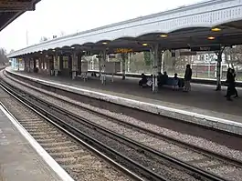 Norbury railway station is a National Rail station in the Norbury area of the London Borough of Croydon in south London. It is on the Brighton Main Line, 7 miles 36 chains (12.0 km) down the line from London Victoria.[3] The station is operated by Southern, which also provides all train services. It is in Travelcard Zone 3 and Ticket barriers are in operation at this station.