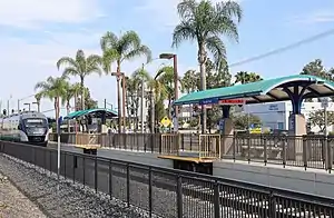 Nordahl Road station is a station served by North County Transit District's SPRINTER hybrid rail line. It straddles the city limits of San Marcos and Escondido, California, with its mailing address in Escondido. The station is located between Barham Drive and Auto Park Way/Nordahl Road, both of which intersect East Mission Road. It consists of a single platform and track.