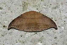 Nordstromia coffeata is a moth in the family Drepanidae. It was described by Hiroshi Inoue in 1992.[1] It is found in the Philippines (Luzon, Mindanao), Borneo and Peninsular Malaysia.[2]