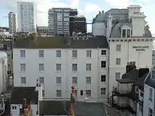 West Street formed the western limit of development in Brighton until the end of the 18th century. At that time, the town was growing from a small fishing and agricultural settlement into a fashionable seaside resort. From 1800 on, seafront land that was formerly part of the West Laine[note 1] was sold off in parcels to speculative builders. Some large-scale residential development took place, but it was only after 1820—when the road running parallel to the beach was widened and straightened to form a seafront promenade called Kings Road—that the area became easily accessible.[3] The hotels, lodging houses and inns built along this stretch of road became the most popular and exclusive in the town at that time.[4]