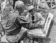 Rockwell painting actor Mike Connors's portrait on the set of Stagecoach (1966).