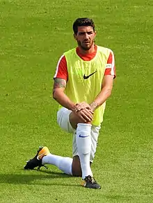 Theuerkauf warming up with 1. FC Heidenheim in 2017