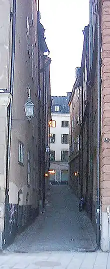 - 1 2 "Innerstaden: Gamla stan". Stockholms gatunamn (2nd ed.). Stockholm: Kommittén för Stockholmsforskning. 1992. pp. 63–64. ISBN 91-7031-042-4.