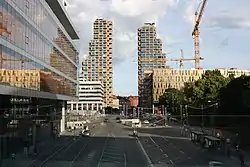 Despite being criticised for its height and for being similar to the Embarcadero Center in San Francisco,[5] a Norwegian company was awarded the contract to build the skyscrapers – only to pull out in 2011, citing lack of funds.[6][7] In 2012, the city invited several companies for a new informal competition for the development rights to the property.[8] Mayor Sten Nordin finally presented the winning proposal in June 2013: A design by the Dutch architectural firm OMA, commissioned by Oscar Properties, scheduled for completion in 2018.[9]