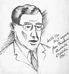 At graduation from Princeton in 1931, Houghton had two choices: a fellowship at Princeton Graduate College to pursue English Literature or an invitation to join the University Players Guild.[11] The U.P.G.—started as summer theatre in Cape Cod, aspiring to become a year-round venture—was founded in 1928 by Bretaigne Windust and Charles Leatherbee with involvement of Josh Logan. Houghton chose the U.P.G., which melded his interests in theatrical productions with gifted artists. As with associations during his undergraduate years, he would know his U.P.G. friends as colleagues and notables who would dominate stage and screen for decades. In Houghton's first year with the U.P.G. (the group's fourth summer season) Leatherbee, Logan and Windust espoused "the idea of theatre artists working together over a long period of time subordinating themselves to the whole and finding therein a satisfaction beyond that accruing from individual glory." Performances emerged without long rehearsals; actors learned roles in several days; sets were designed with the sketchiest of preliminary layouts. Each summer provided adventures and emotional upheavals, chronicled in Houghton's account of the U.P.G. Players, But Not Forgotten. This concept of a collective ensemble would persist throughout Houghton's career. More than a concern for long term stability, it reflected his concept of advancing beyond tradition to open channels for new forms of creativity. While the U.P.G. did not succeed as a long term venture, Houghton recalled "we had the memory of a dream that was not yet really proved vain. It had been a glorious prelude to a life in the theatre."[5][9][12][13]