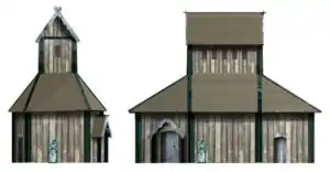 The sources disagree about faiths buildings, so there are varying opinions about their form and nature.[24] However, it seems that for some buildings, sacral use was secondary.[25] The Germanic languages had no words in pre-Christian times that directly corresponded to the Latin templum, the ancestor of the modern word temple. Thus it has long been a topic for discussion whether there were buildings exclusively meant for religious purposes in pre-Christian Scandinavia.[26] It is most likely that religious buildings were erected in some places, as the words hörgr and hof are found in several place-names.[7] Other sources suggests that the ritual acts were not necessarily limited to religious buildings. Whether "temples" were built is likely to have depended on local custom and economic resources.[27] A hof or a hörgr did not need to be connected to one of the faiths centres.[28]
