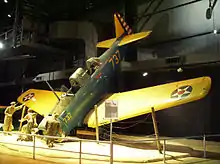 The remaining 119 undelivered aircraft were bought up by the British Purchasing Commission and transferred to the Royal Canadian Air Force (RCAF) for the British Commonwealth Air Training Plan between August and September 1940,[2] and all were operational by November[5] The type was named the Yale Mk.I[note 1] following British naming practice of naming trainers after education institutions and US-supplied aircraft after American locations, in this case, Yale University, and were used initially as intermediate pilot trainers taking pilots from the de Havilland Tiger Moth and Fleet Finch to the much faster and more complex North American Harvard,[4] until this category was dispensed with as being unnecessary. They were then relegated for use as airborne wireless radio trainers, along with the contemporary Fleet Fort intermediate trainer in 1943.[6][7] Prior to service entry, the throttle and engine mixture controls were modified from the system used by the French whereby the throttle was pulled back to increase power, and the mixture control pulled back to lean out the mixture, to the system used on the Harvard.[5] The Yale appeared in the movie Captains of the Clouds. The RCAF sold all surviving examples off as scrap in 1946 but over 30 survive today as a result of a large number of them being bought surplus by a single farmer, with about 15 currently in airworthy condition.