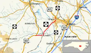 US 421 (Jacksonville Boulevard) / NC 55 (13th Street) / NC 82 ends Lillington, Dunn, Coats