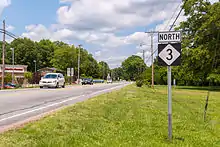 North Carolina Highway 3 (NC 3) is a primary state highway in the U.S. state of North Carolina. The road runs from US 601 in southern Concord, north through Mooresville to US 29 in Kannapolis. It is numbered after Dale Earnhardt, the NASCAR driver, who was driving the #3 car when he died at the 2001 Daytona 500.[3] This state highway runs from Kannapolis, Earnhardt's birthplace, to downtown Mooresville, where many NASCAR teams are based. A short section of NC 3 is named Dale Earnhardt Boulevard, a name which was given to the road prior to Earnhardt's death.