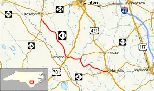 US 421 (Delway Highway) / NC 41 east (Wallace Highway) Clinton, Wilmington, Wallace