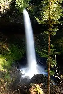 North Falls is a waterfall located in the Silver Falls State Park at the east end of the city of Salem, in Marion County, in the U.S. state of Oregon.[1] It is located in a privileged area on the west foothills where Mount Hood National Forest meets with the Middle Santiam Wilderness. Several prominent waterfalls are located in the Park along Trail of Ten Falls: South Falls, Drake Falls, Lower South Falls, and Winter Falls—among others.