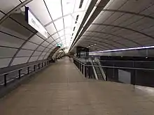 North Ryde station closed in September 2018 for seven months for conversion to a Sydney Metro station on the Metro North West Line, which included the installation of platform screen doors.[5] It reopened on 26 May 2019. It serves the nearby Lachlan's Line mixed-use development, which first opened in 2019.[6] The residential development is connected to North Ryde station via a shared pedestrian/cycling bridge over the M2 Hills Motorway and Delhi Road.[7]