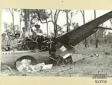 - ↑ One of which carried the tail code number 354. Australian war artist Roy Hodgkinson depoicted one of these crash sites in a drawing, now in the collection of the Australian War Memorial (ART 21687). Archived 24 September 2012 at the Wayback Machine