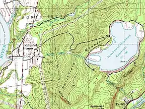The 114-mile (183 km) Metacomet-Monadnock Trail crosses the summit ridge of Northfield Mountain; a series of shorter hiking trails, cross country ski trails, a cross-country running course, and rock climbing routes are also located on the mountain and its ledges.[1] Northfield Mountain is located at the confluence of the Connecticut River and Millers River. A waterfall, Briggs Brook Falls, plunges from its southeast side.