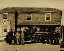 The initial fire station was built from March to May 1931; the cornerstone was laid on March 10.[2] The station was the only one built in the city during the Great Depression.[3] The building cost "several thousands of dollars", though it was unoccupied for over a year past its opening. The city had weakened finances, and thus postponed purchasing fire equipment and hiring firefighters to operate the station. Around May 1932, the city began the bidding process to purchase a fire engine for the station, relieving the then-new portion of the city from having to utilize a station over three miles away, which only had a single fire truck.[4] By late May, the city found it lacked the $18,000 necessary for new equipment, and so the city council ordered a fire engine and eight men to relocate from Engine House 16 to the new station.[5] The station was dedicated, staffed by ten firefighters, on August 24, 1932.[6]