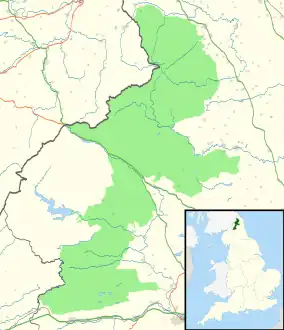 The Northumberland National Park covers a large area of Western Northumberland and borders the English county of Cumbria and the Scottish council area of The Scottish Borders. The national park encompasses much of the Cheviot Hills and adjoins the Southern Uplands of Scotland, which the hills are sometimes considered a part of. Since the Pennine Way runs through the national park, the Cheviot Hills are also considered a part of the northern Pennines although they are separated from the Cheviot Hills by the Tyne Gap, part of which lies within the southern extent of the national park. Part of Kielder Forest lies within the park, and in other areas forms a forest park. Kielder Forest is the largest man-made forest in Europe and surrounds Kielder Water.[1][2]