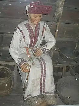 The origin of the Northwestern Maris belongs to the larger history of the Mari people. Most scientists, based on linguistic and archaeological data, associated them with being descendants of the north-western part of the Iron Age Gorodets culture. It was localized between the middle Volga's right tributaries Oka and Sura. In the 6th century AD, Gorodets population moved to the north bank of the Volga up to Vetluga and Bolshaya Kokshaga rivers. There they were greatly influenced by the Ananyino culture. The differences between Northwestern and other groups of Mari appeared in the 9th-10th centuries. In the 10th-13th centuries some related upper Volga Dyakovo tribes joined to Northwestern Maris and were assimilated by them. During the unification of Russian principalities around Moscow the part of Northwestern Mari became a part of Moscovian State.[2]